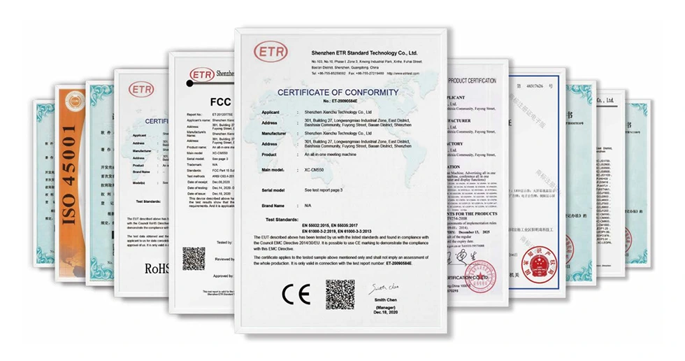 Vásároljon bizalommal. Jelenleg a gyár megfelel az ISO9001 minőségirányítási rendszer tanúsítványának, az energiatakarékossági tanúsítványnak, a 3C, CE, ET, FCC, ROHS stb. követelményeinek. Ez biztosítja a termék biztonságát, energiahatékonyságát és környezetvédelmi megfelelőségét, így megbízható és megbízható választássá válik a minőségbiztosított professzionális kijelzőket kereső globális vásárlók számára.