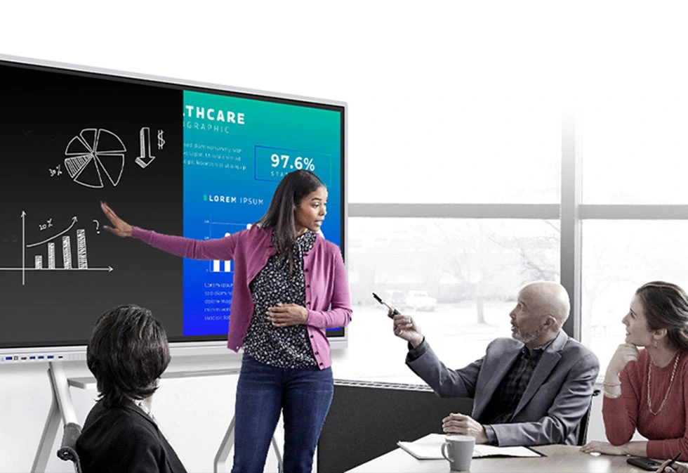 A 116 hüvelykes 4K UHD lapos képernyő újradefiniálja a csapat együttműködését azáltal, hogy a nehézkes berendezéseket egyetlen integrált megoldással cseréli le, elősegítve a hatékonyabb kommunikációt.